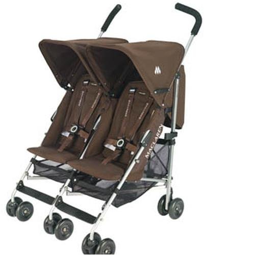 Buy Low Price From Here Now Embodying the same clean design as the single Triumph but with seating for two, the Maclaren® Twin Triumph Stroller in coffee brown is easy to maneuver and its light chassis and compact width means the buggy slides through standard-sized doors with ease. The Twin Triumph offers independent multiple seat positions, a carry handle, 99% protective viewing windows on the hoods, and an adjustable harness with stripes. Ergonomic foam-gripped handles positioned at a comfortable height makes pushing this stroller comfortable for you. An adjustable 5-point harness keeps your baby safe and secure, while and lockable, 4.5-inch dual-swivel wheels give the stroller a smooth ride. Lightweight for a twin stroller, it also comes complete with hoods, a raincover and shopping baskets.